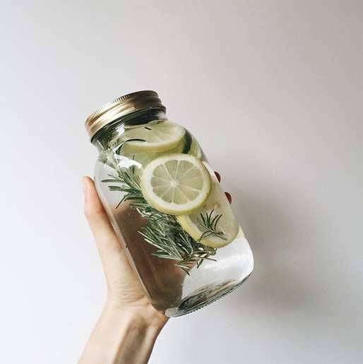 Em 1 litro de água, adicione 3 rodelas de limão siciliano, 2 rodelas de limão Tahiti e 1 ramo de alecrim.