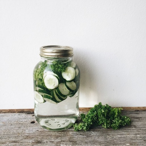 Em 1 litro de água filtrada, adicione fatias finas de meio pepino japonês e um punhado de salsinha. Espere 20 minutos antes de beber.