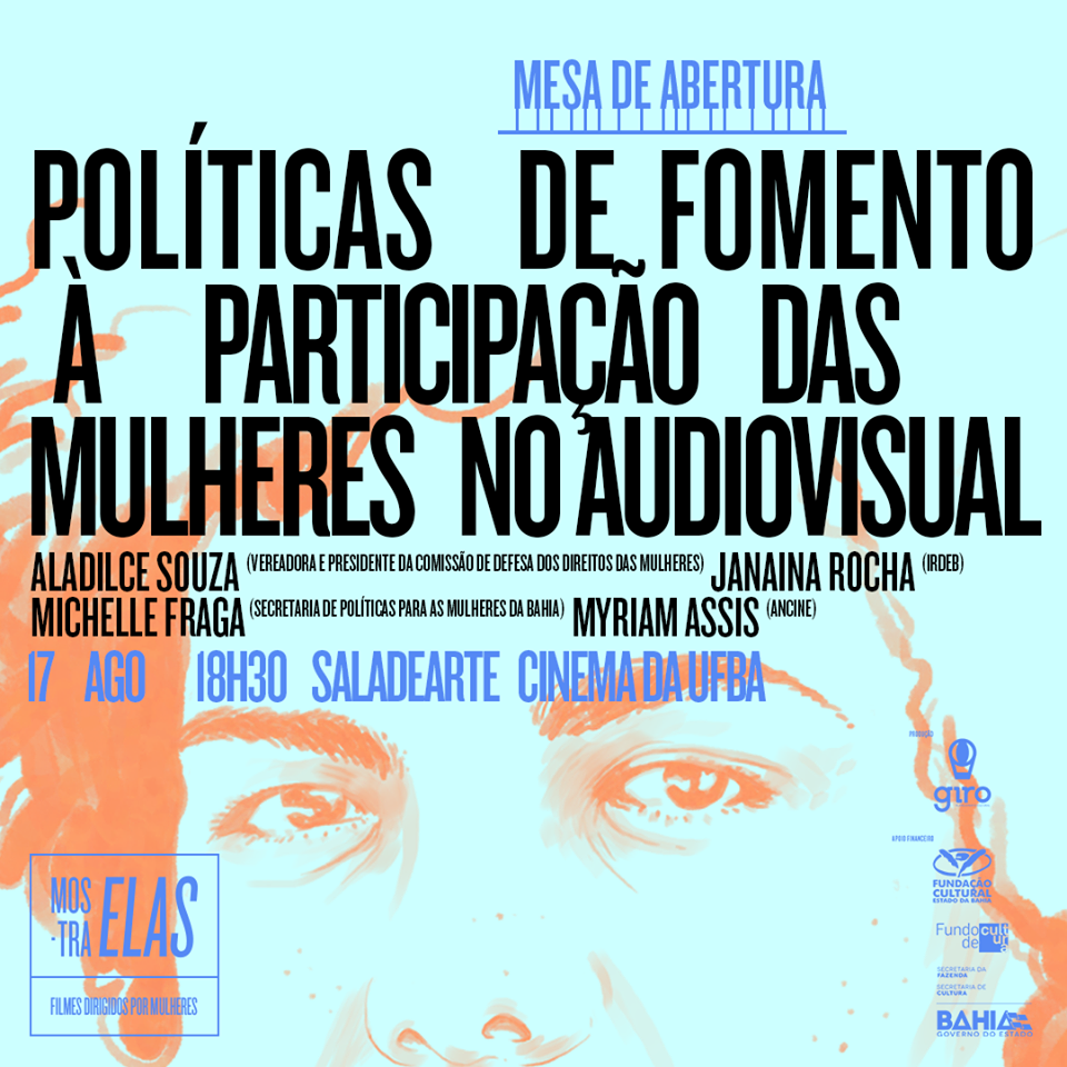 Trinta filmes contemporâneos, com temas urgentes, realizados por mulheres no Brasil compõem a seleção da Edição I do Mostra Elas – Filmes Dirigidos por Mulheres, que acontece entre os dias 17 e 20 de agosto, na Sala de Arte Cinema da UFBA, em Salvador. A iniciativa é realizada pela Giro Planejamento Cultural e conta com o apoio financeiro do Fundo de Cultura da Secretaria de Cultura do Estado da Bahia. Os ingressos para a Mostra Elas valem R$4 (inteira) e R$2 (meia). Para as mesas de debates, a entrada é gratuita, sujeita à lotação do espaço. A programação completa está no site www.mostraelas.com. Mais informações podem ser obtidas pelo e-mail contato@mostraelas.com.