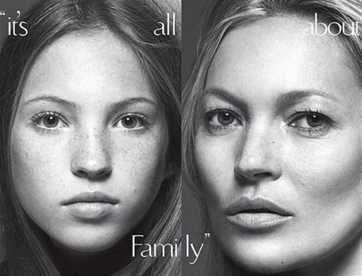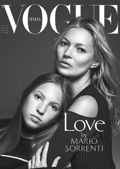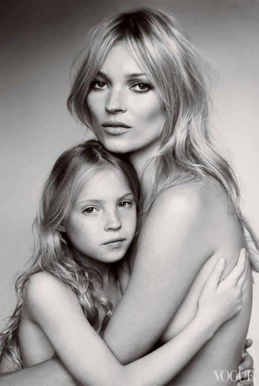 É incrível a semelhança entre mãe e filha, Kate Moss e Lila Grace Moss Hack,na capa da Vogue italiana. Na imagem em questão, Moss é fotografada abraçando a filha, fruto de uma relação de apenas três anos com Jefferson Hack - cofundador da publicação Dazed & Confused. O retrato em preto e branco pode muito bem marcar o começo da jovem no universo da moda.