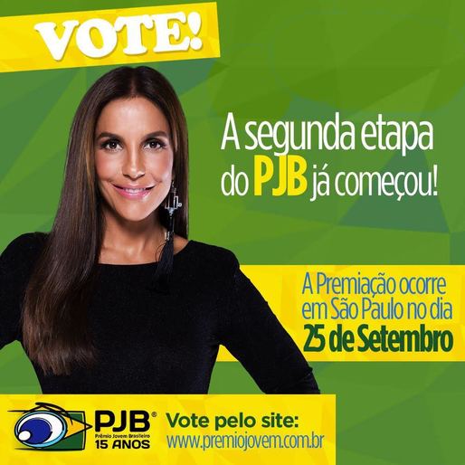 A cantora Ivete Sangalo foi indicada no TOP10PJB e está na segunda fase do Prêmio Jovem Brasileiro. A baiana concorre nas categorias “Internet”, com indicação como melhor perfil no Snapchat e Instagram, e “Música”, concorrendo como “Melhor Show” do ano. O público pode votar através do site www.premiojovem.com.br, ou pelo aplicativo do PJB, disponível para Android e iOS. Ao longo dos 15 anos de premiação, a cantora já venceu em categorias como “Melhor DVD eleito pelo público jovem”, “Melhor Cantora escolhida pelos jovens” e “Melhor Show”.
