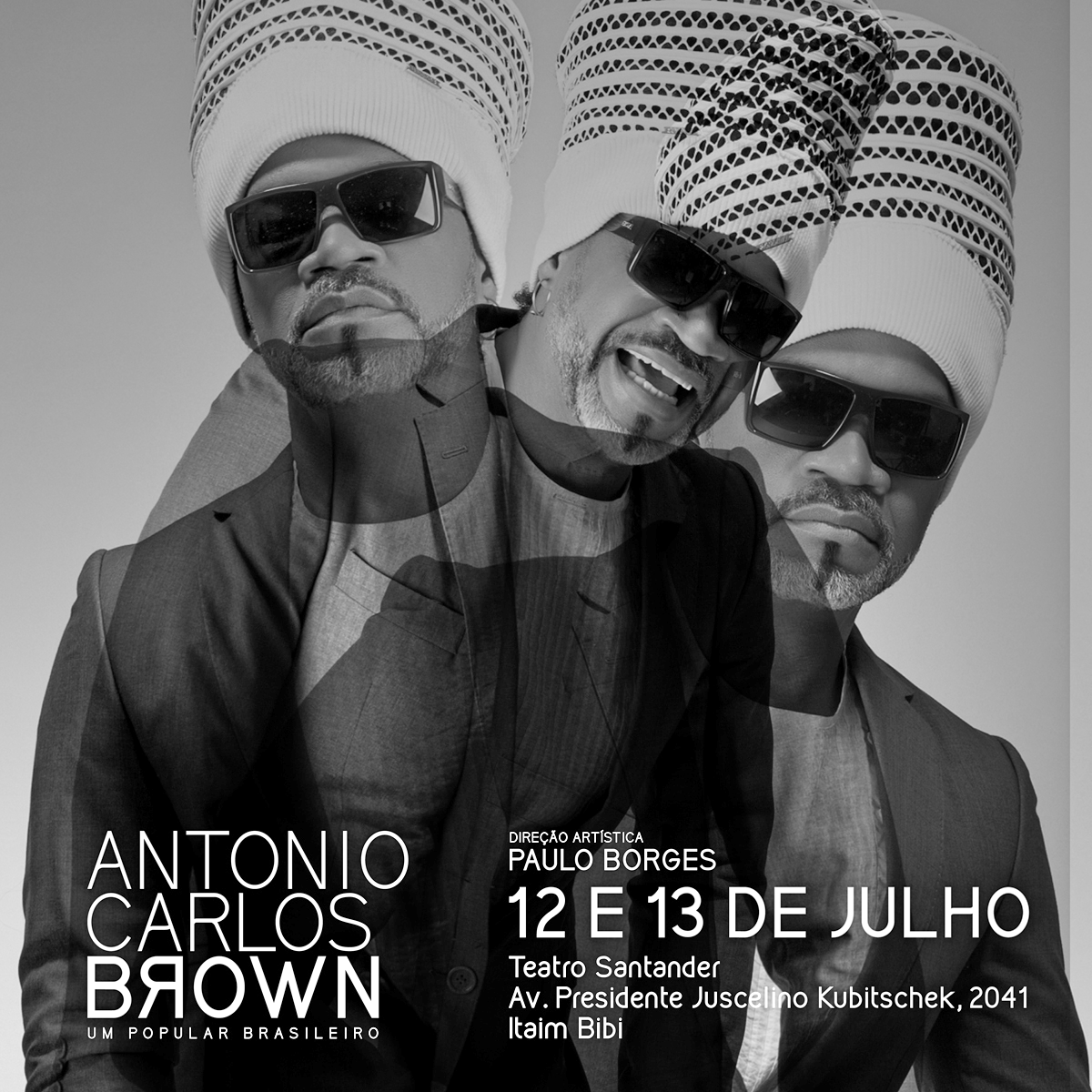 Show “ANTÔNIO CARLOS BROWN – Um popular brasileiro” movimenta hoje e amanha o Teatro Santander, no complexo do Shopping JK Iguatemi. Carlinhos Brown faz depois de 12 anos duas apresentações históricas em São Paulo. Carlinhos tem uma ligação muito forte com a capital paulista. Sua primeira passagem pela Cidade foi ao lado de Caetano Veloso, num show da turnê Estrangeiro, em 1989. “De lá cá São Paulo só me ajudou a crescer como pessoa e hoje estou muito feliz em poder retornar a terra de meu compadre Arnaldo Antunes e fazer uma show para este povo que tenho muito respeito e admiração”, destaca Brown.