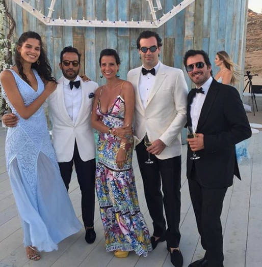 Em Lia Mykonos - Grécia, Adriana Bittecourt e Alexandre Furmanovich com amigos em um casório.