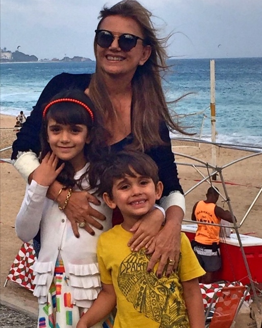 Vitorinha Dantas com os netos na Praia do Leblon - Posto 12