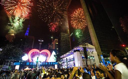 Show de fogos em Balneário Camboriú na Praia Central encantou turistas na virada para 2015 (Foto: Celso Peixoto:Divulgação) (Foto: Reprodução)