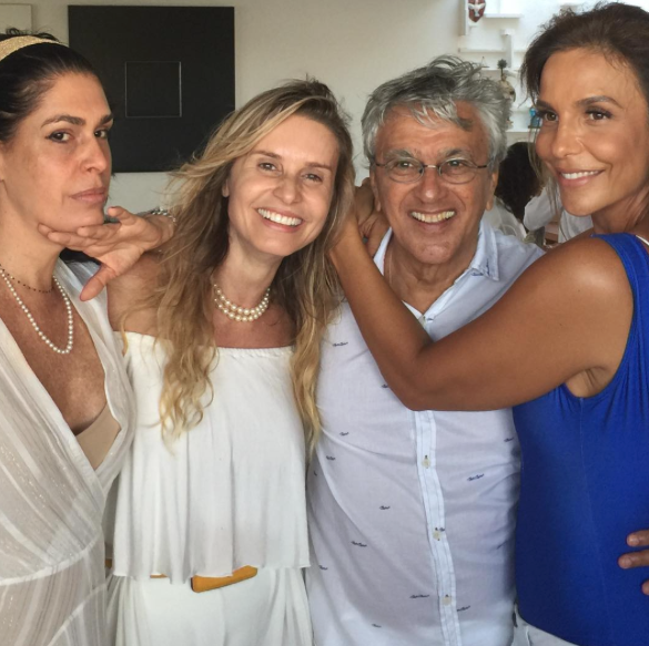 Paula Burlamaqui amou a festa que mainha fez pra ela no dia de Iemanjá. Na foto com Paula Lavigne, Caetano Veloso e Ivete Sangalo