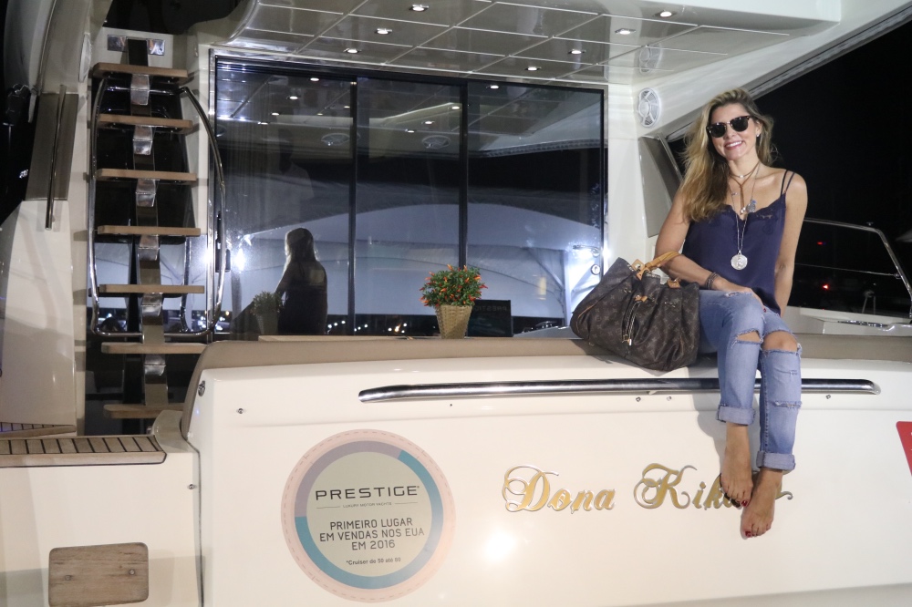 Depois de uma temporada de ferias na Europa buscando inspirações para sua nova coleção, a estilista Bianca Marques visitou o Rio Boat Show a convite do Estaleiro Prestige, marca francesa de barcos que é comadanda pelo empresario Mauricio Barreto que estava expondo alguns de seus iates de 55 a 89 pes. A evento nautico aconteceu ate dia 11 de abril na Marina da Gloria no Rio de Janeiro.