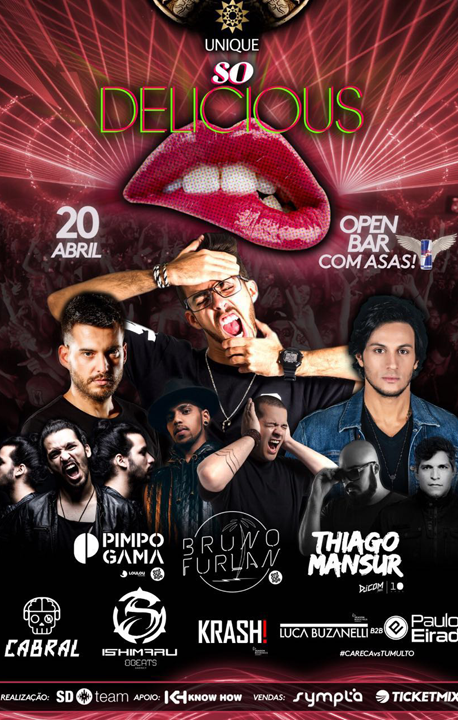 Na próxima quinta-feira (20), véspera de feriado, o Unique Eventos vai se transformar numa grande arena musical para receber o “So Delicious”, evento de música eletrônica que promete reunir a galera mais animada da cidade. Na programação DJ´s de referências nacional e internacional. como Thiago Mansur, Bruno Furlan, Paulo Eirado, Pimpo Gama, Cabral, Ishimaru e Luca Buzanelli.