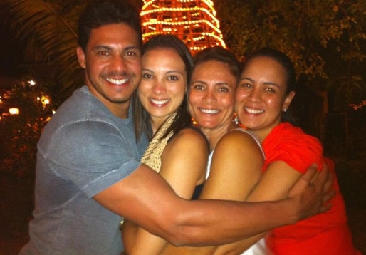 Família Caribé: Norlandia no abraço com os filhos Ricardo, Juliana e Maria Fernanda (Foto: Reprodução)