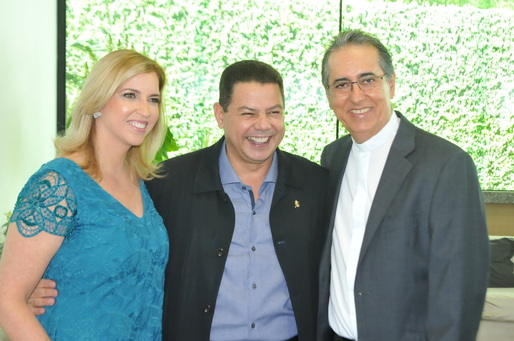 Monica e Marcelo Sacramento e Padre Luis Simões (Foto: Paulo Sousa)