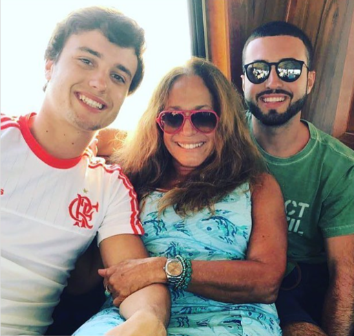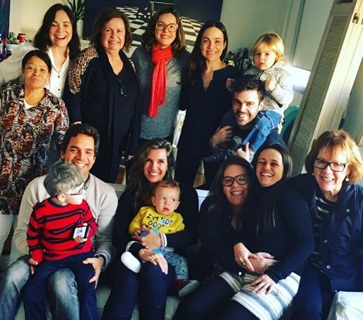 Regina Duarte com a família e seus três filhos Gabriela Duarte, João Gimenez e André Duarte, os netos Theo, Antônio e João Gabriel, e da nora Regiane Alves. (Foto: Reprodução)