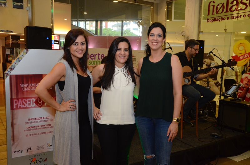As designers de interiores Mila Caramelo e Mila Saraiva, sócias da MM8 Arquitetura, assinam o novo lounge do Shopping Paseo, que disponibiliza ainda wifizone e um totem carregador de celular. O espaço foi inaugurado como presente de aniversário de 9 anos do Shopping, mas quem ganha são os seus clientes. O novo lounge possui mais de 20m2 de espaço e foi concebido com muita madeira e tons terrosos, que proporcionam aconchego, em equilíbrio com a decoração do Paseo. “A proposta do lounge foi criar um espaço despojado e funcional, oferecendo ainda mais conforto aos clientes do shopping”, declarou Mila Caramelo, uma das responsáveis pelo projeto. As sócias da MM8 Arquitetura e Interiores utilizaram também vasos vietinamitas, que deram um charme especial ao ambiente. Além da inauguração do novo espaço, o aniversário do Paseo contou com apresentação de jazz do grupo Alexandre Montenegro Trio, bolo e espumantes para os clientes.