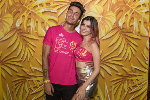 A blogueira e youtuber Nah Cardoso chegou no Camarote Salvador com as madeixas combinando com a cor rosa da camisa do último dia de folia. Ela está acompanhada do namorado Pelu, ex-integrante da banda Restart.