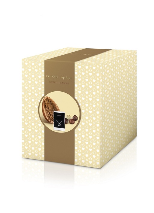 Confeccionado artesanalmente, o Ovo Sweet Treasure (1kg) é feito com chocolate ao leite, mesclado com damasco seco, avelã, castanha-de-caju e uvas passas decorado com chocolate ao leite. Dentro acompanha deliciosas trufas com quatro sabores diferentes e um lindo colar Locket, da Pandora. O item, feito com prata de lei, possui um design clássico e paredes de vidro transparente, que exibem os petites, enfeites que traduzem as lembranças dos consumidores, por R$ 499.