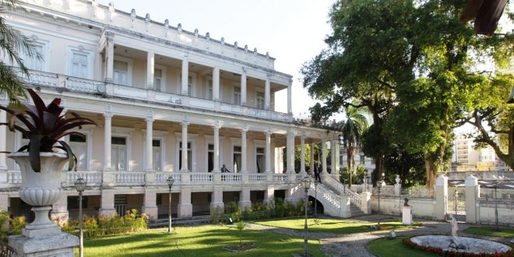 O palácio exibe uma bela fachada em estilo neoclássico.