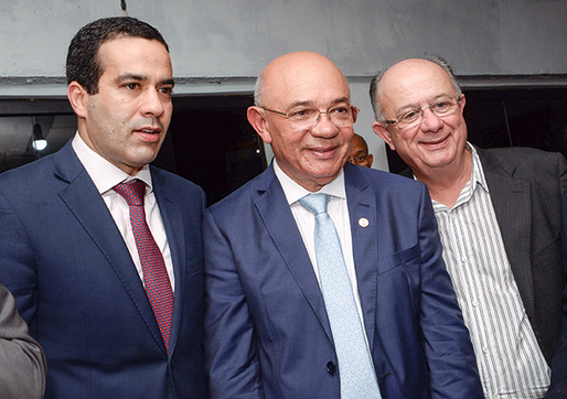 Pastor Valdomiro Pereira entre Bruno Reis e José Ronaldo (Foto: Valtério)
