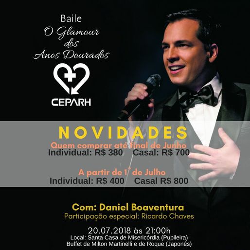 O tradicional e badalado Baile "O Glamour dos Anos Dourados",em prol do CEPARH, já tem data marcada. Será dia 20 de julho, na Santa Casa de Misericórdia na Pupileira, mais um evento de Milton Martinelli.