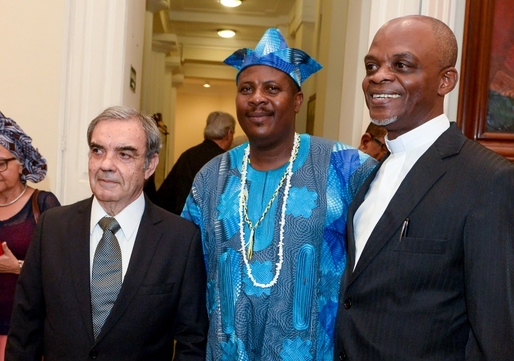 Eduardo Moraes de Castro, Felix Ayoh Omidire e padre Gilson Magno (Foto: Valtério)