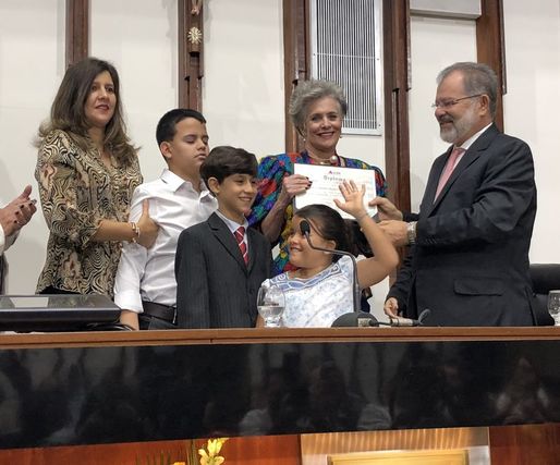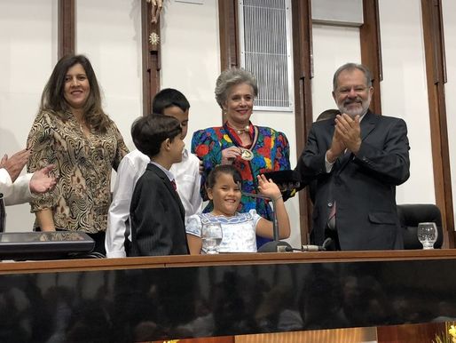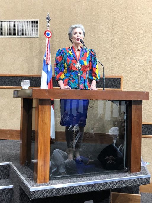 Com o plenário da Assembleia Legislativa repleto de amigos e admiradores e no exato dia em que foi eleita Miss Bahia há 50 anos, a baiana Martha Vasconcellos foi agraciada hoje (15.06) com a Comenda Dois de Julho, a mais alta condecoração da Casa. O deputado Marcelo Nilo, autor da proposição, saudou a homenageada que adentrou ao plenário ao som da marchinha Martinha da Bahia, sucesso da época em que foi eleita a mais bela do universo. Nilo destacou a trajetória da soteropolitana, citando não somente os títulos de beleza, mas também o trabalho como psicóloga em Boston, defendendo mulheres vítimas de violência doméstica, e os três prêmios que recebeu na área dos direitos humanos nos EUA.