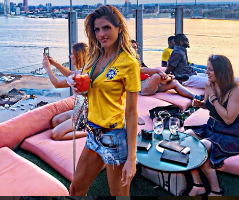 A baianinha Carol Magalhães que se encontra em temporada novaiorquina onde está fazendo um curso intensivo, veste verde e amarelo para o grande jogo do Brasil que começa às 9 horas (horário de Brasília) para enfrentar a Costa Rica, no Estádio Saint Petersburg (Krestovsky Stadium).