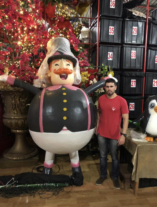 Para a decoração do Juá Garden Shopping, em Juazeiro, o tema escolhido foi Natal dos Balões, com direito a elementos aéreos, com Papai Noel passeando em balõezinhos e pulando de paraquedas. “Fizemos ainda uma árvore de sete metros e colocamos a poltrona do Papai Noel dentro do cesto de um balão gigante de 5 metros de altura”.