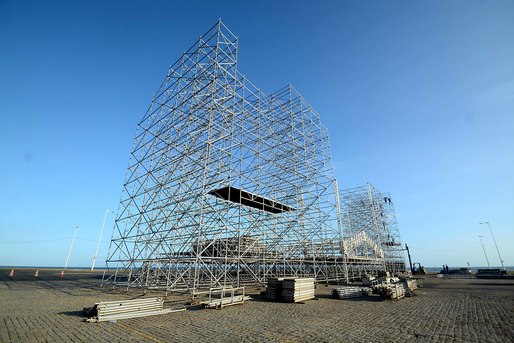 O palco que vai receber grandes nomes da música brasileira durante os cinco dias do Festival Virada Salvador 2019 já começou a ser montado na orla da Boca do Rio, no espaço onde é erguida a Arena Daniela Mercury. A estrutura do palco, juntamente com a cenografia, terá 60 metros de frente por 16 metros de altura e vai contar com dez geradores. A cobertura é de alumínio, material mais moderno e que possibilita maior agilidade para a montagem.