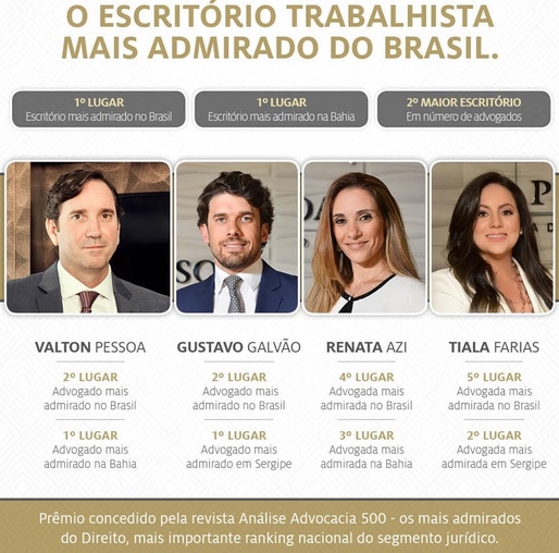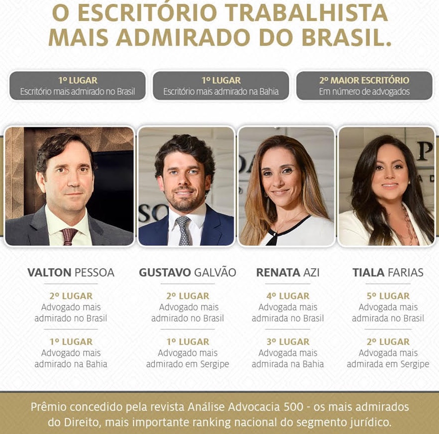 Esta turma de advogados baianos do Pessoa&Pessoa está podendo. Veja o resultado da Revista Análise Advocacia com os 500 mais admirados do ano 2018.