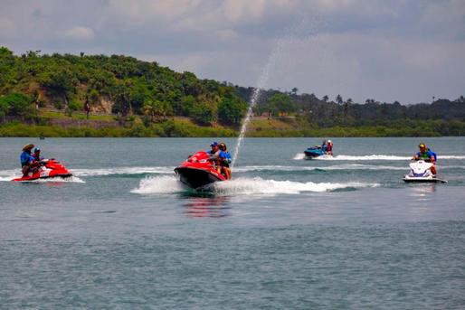 Esportistas remando atravessam a Baía de Todos os Santos levando brinquedos para a garotada da Gamboa de Baixo