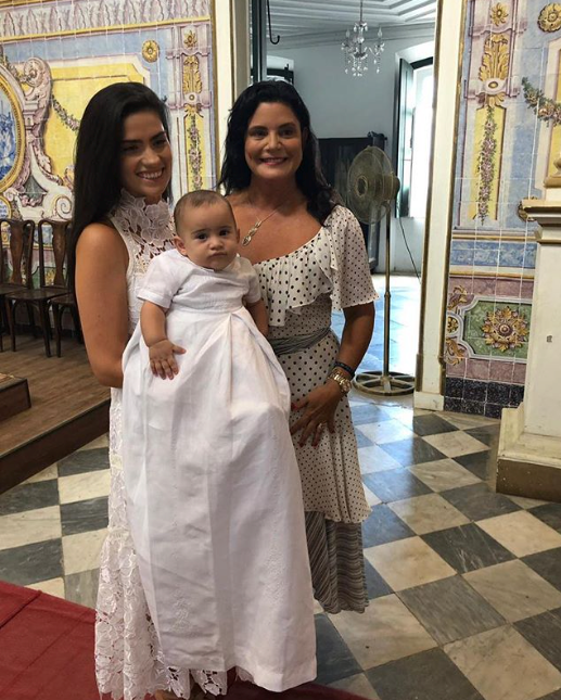 Tercia Borges ao lado de sua linda filha Barbara Suarez batizou seu neto Manolo Borges Andion Suarez em cerimonia familiar na Igreja da Vitória.