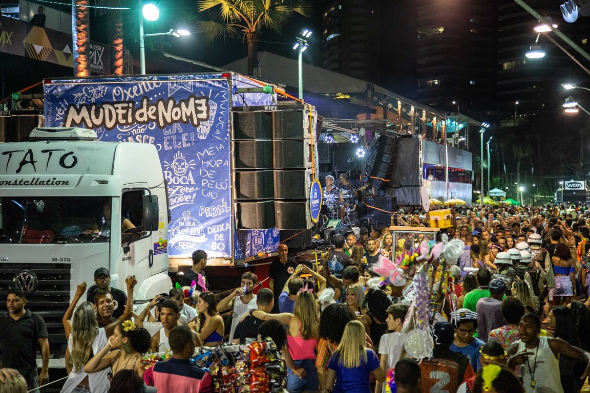 Oo Movimento Musical MUDEideNOME fez o seu desfile na tarde de ontem, quinta(28), no circuito Barra/Ondina (Dodô). As 18h, Ricardo Chaves, Magary Lord, Ramon Cruz e Jonga Cunha já estavam na avenida, todos de mortalha, arrastando a população a bordo do pranchão – caminhão criado a partir de uma modificação no trio, que faz com que os músicos fiquem mais próximos do público, como se estivessem em um palco.