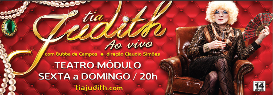 Com vinte e dois anos de carreira, o ator baiano Bubba de Campos parte em novo desafio. Levar a sua mais renomada personagem, a famosa Tia Judith, para o palco. A estreia da peça Tia Judith ao Vivo será no dia 16 de maio, às 21h, e ficará em cartaz até 28 de julho no Teatro Módulo, com sessões às sextas-feiras, sábados e domingos, às 20h.