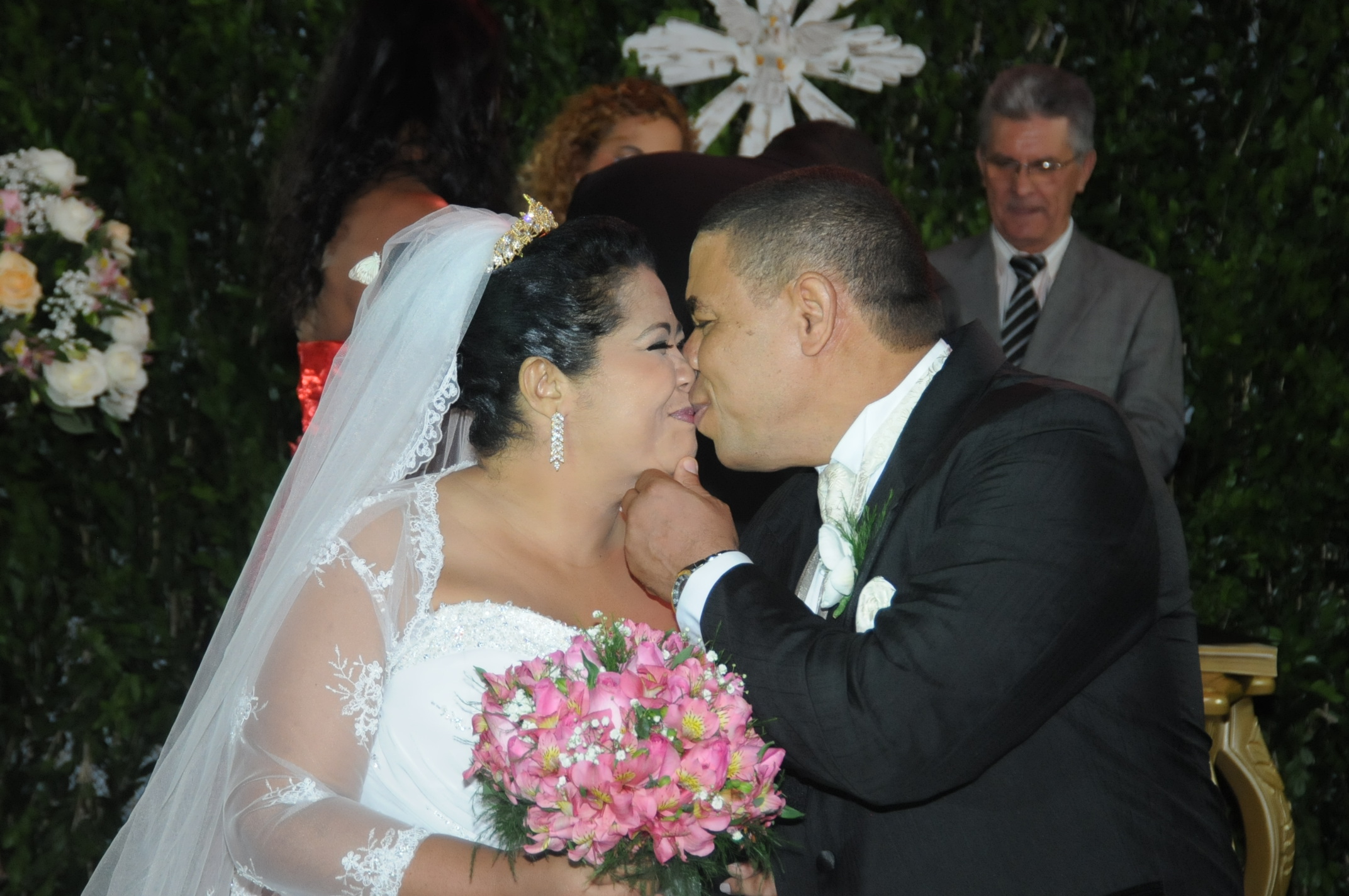 A empresária Simone Pacheco trocou alianças com Paulo Augusto Pacheco, subtenente da Polícia Militar, durante belíssima cerimônia realizada no Cerimonial Villa São José. A organizadora de eventos Rose Ferrari foi a responsável por toda a preparação da festa que oficializou, depois de 11 anos de relacionamento, a união do casal, emocionando parentes e amigos presentes na cerimônia. Destaque para a noiva, que vestia um belíssimo modelo da loja M Zanirato, com maquiagem e produção assinadas por Jô Azevedo, que levou toda a estrutura de seu salão para a casa na noiva.