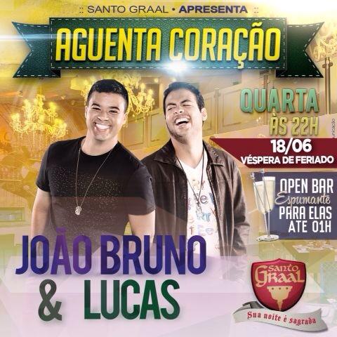 Uma nova dupla sertaneja de sucesso desponta no cenário musical da Bahia. Juntos há dois anos, João Bruno & Lucas acabam de lançar o clipe “Lembranças”, nas redes sociais, que promete ser um dos grandes hits da estação. Com direção de André Neves (Deco Harmonia) e produção musical de Nau Scaldaferri, o vídeo contou com participações especiais dos músicos Diego Freitas, Jaguar Andrade, Pedrinho Fonseca e Rildo Gomes. Hoje, a partir das 22h, o público pode curtir de perto a apresentação deles no Santo Graal.