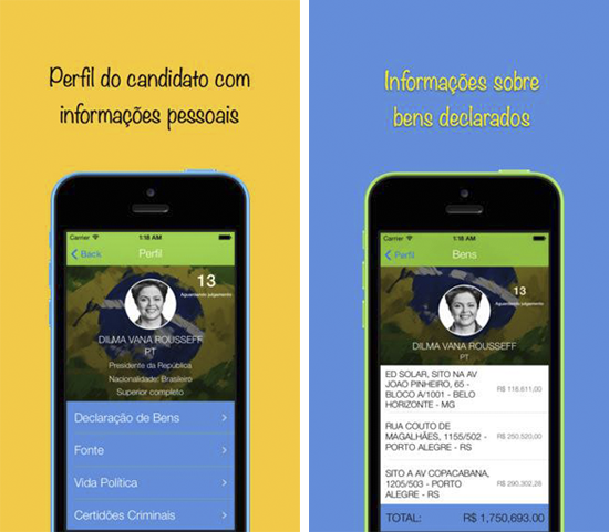 Um aplicativo deve facilitar o conhecimento dos brasileiros nas eleições de 2014. O app, batizado com o nome “Acordei”, está disponível nas versões Android e iOS, e fornece acesso às declarações de bens dos postulantes aos cargos públicos, além das suas certidões criminais sobre os candidatos aos cargos de deputados estadual e federal, senador e governador de todos os estados do Brasil, além dos presidenciáveis. O aplicativo também fica disponibilizado o acesso à pagina de cada um dos candidatos no site do Tribunal Superior Eleitoral, além de informar o nível de instrução, valor liberado para gasto em campanha e ocupação de cada um. Vale a pena testar!