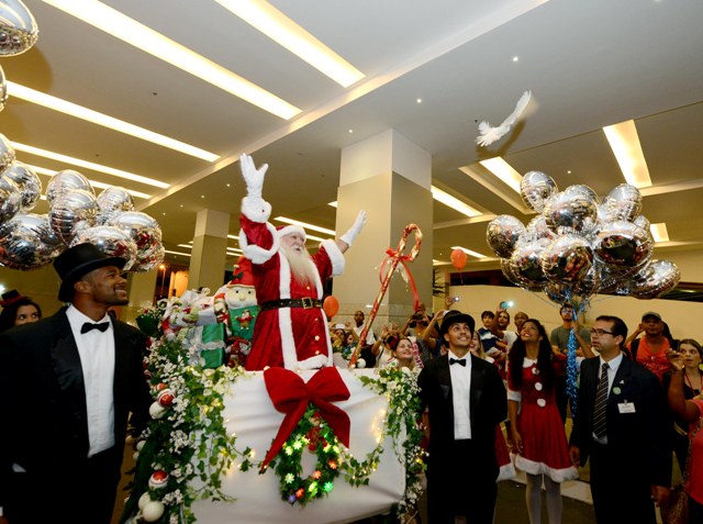 Uma noite de muita alegria, encanto e emoção! Foi assim a noite da última sexta-feira, 31 de outubro, durante a chegada do Papai Noel e a inauguração de Natal do Shopping Barra. Os fogos anunciaram o Bom Velhinho, que veio em uma luxuosa carruagem, cheia de presentes, puxada por um pônei branco. As batidas do sino e uma pomba branca, que foi solta pelo Papai Noel antes da sua descida, deixaram a mensagem de Felicidade e Paz – tema da decoração natalina este ano. Crianças e adultos o aguardavam na entrada principal do shopping, com acesso ao Barra Gourmet, que foi palco para uma performance de bailarinas do Ballet Rosana Abubakir, com coreografias e músicas especiais. Um corredor foi formado para a passagem do Papai Noel, que foi acompanhado por um trio de saxofonistas, noeletes e duendes até a Praça Central onde, com o seu cajado, inaugurou a decoração. Mais de 1 milhão e duzentas mil microlâmpadas foram acesas e ursos e bonecos ganharam vida no espaço. Nas sacadas do shopping, bailarinas dançaram músicas de Natal e contagiaram o público que esperava ansioso por este grande momento. Toda em verde e branco, com uma árvore gigante de 16 metros, laços, bolas e flores, a decoração trouxe também itens interativos como tinas giratórias, uma orquestra de ursos polares, trenó, carroça com cavalo, regador, mesa decorada com o Papai Noel, uma fonte e árvores laterais. Luxuosa, a decoração é assinada pela grife Cecília Dale - referência no País em projetos de decoração feitos sob medida com cenários, temas e personagens exclusivos – que chegou ao Nordeste pela primeira vez. A grife trouxe também uma segunda árvore, de 14 metros de altura, que está montada na área externa do shopping.
