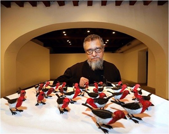 Entre as obras expostas consta a instalação “Uma coisa linda”, com 150 pássaros da espécie galos-de-campina, feitos em bronze policromado, distribuídos pelo piso da sala em grupos de unidades variáveis, formando uma cartografia determinada pelo artista. A instalação “10 Hummingbirds”, destaque na Frieze 2015 - uma das mais importantes feiras de arte internacional - em Londres, é composta por dez beija-flores, também em bronze policromado com tintas iridescentes, com tonalidades diferentes, fincados na parede pelo longo bico.