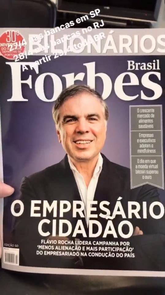A Forbes que chegou às bancas, destaca o crescimento do papel do empresário nessa nova etapa de desenvolvimento, e destaca Flavio Rocha, leia-se Riachuelo, como combatente dessa luta. O inspirador texto de José Vicente Bernardo fala da transição de "empresário moita" para "empresário cidadão".