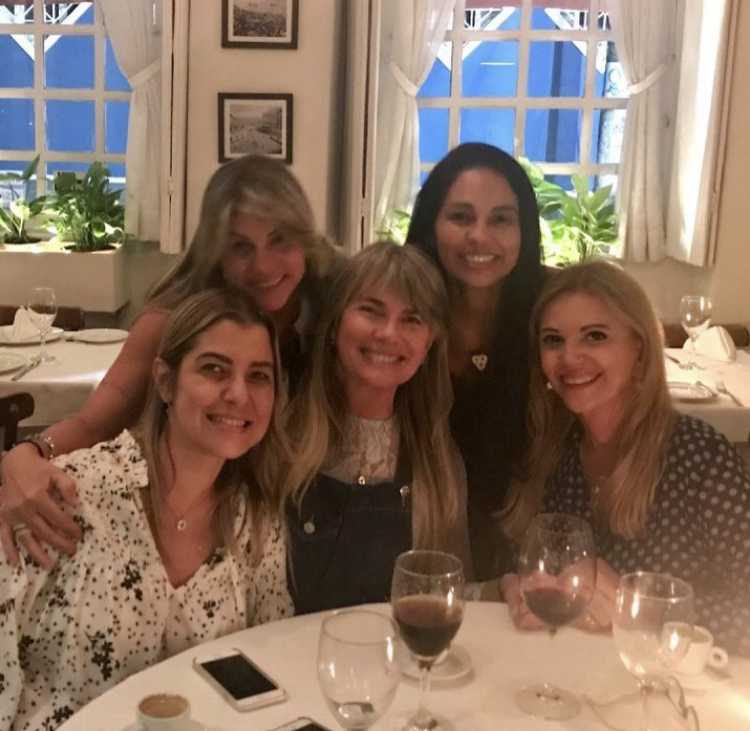 A advogada Vitorinha Dantas, em raro momento de lazer, pilotava simpática mesa, ontem, no Restaurante Taboada Bistrot, ao de Patrícia Linhares, mulher do cantor Ricardo Chaves, e um grupo de amigas .