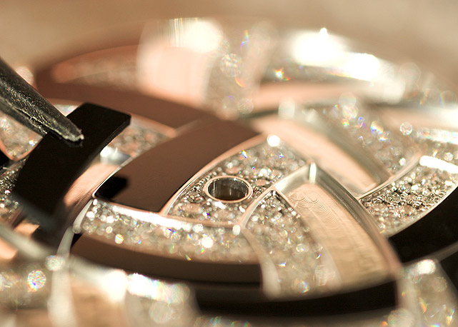 O Arceu Temari vem agradando o público feminino literalmente apaixonado pelo poder dos diamantes cravejados em ouro branco que compõem o novo relógio da Hermés - o feminino Arceau Temari. Um espetáculo ! Uma jóia que une-se a alma feminina.