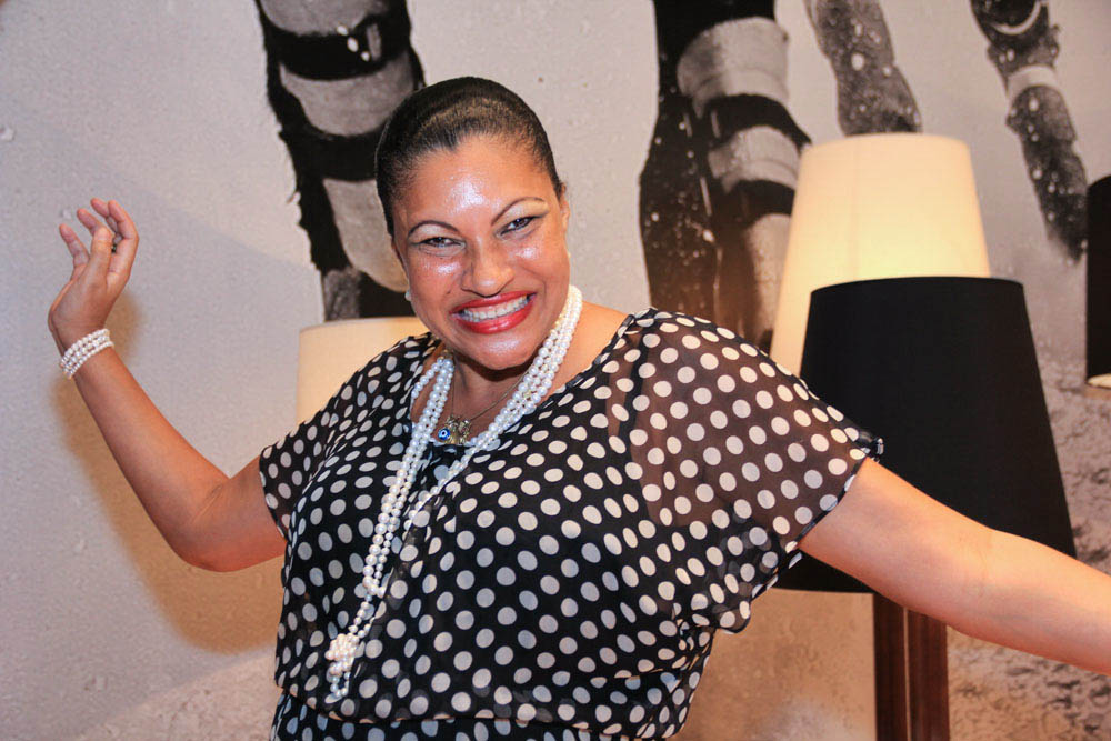 Sonia Steele recebendo logo mais para um jantar, em sua residência no Horto Florestal, em torno da aniversariante Martha Goes.
