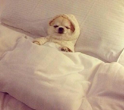 Simone Abravanel postou nas redes sociais a preguiça de sua companheira de estimaçao com preguiça de sair da cama...o máximo!!!