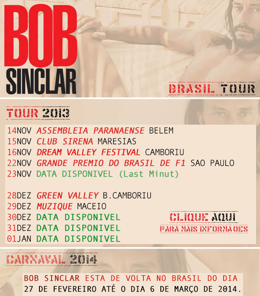 Bob Sinclar Brasil Tour 2013-2014 (Foto: Reprodução)