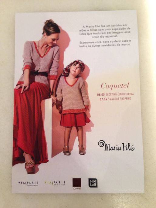 Na próxima semana um encontro marcado só de mulheres! A Maria Filó estará promovendo uma exposição com fotos bacanérrimas de mães e seus filhos demonstrando o sublime amor entre eles. O coquetel será nos dias 06/05 no Shopping Barra e no dia 07/05 no Salvador Shopping.