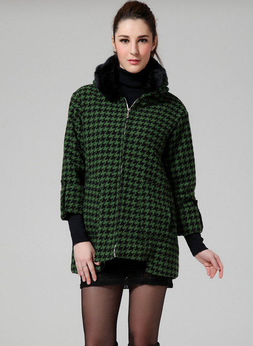 Black Green Hooded Long Sleeve Houndstooth Coat (Foto: Reprodução)