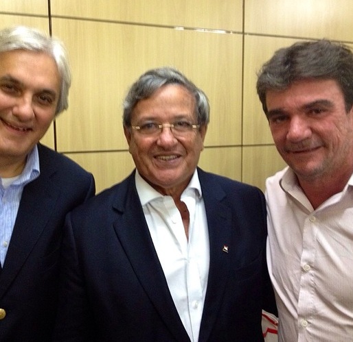 Benito Gama ao lado do senador Delcídio Amaral e o presidente do Corinthias Andres Sanchez em São Paulo.