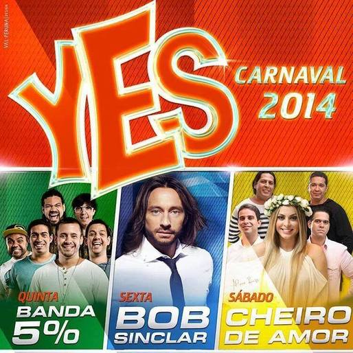 A contagem regressiva para o Carnaval de 2014 já começou! E o Bloco Yes Bahia Club - destaque nos últimos carnavais ao levar para a avenida DJs internacionais e grandes nomes da música baiana - está preparado para animar os foliões. O trio, que vai percorrer os três dias do circuito barra-ondina, será comandado na quinta-feira pela Banda 5%, sexta-feira pelo Dj francês Bob Sinclar e sábado pela anfitriãBanda Cheiro de Amor.]