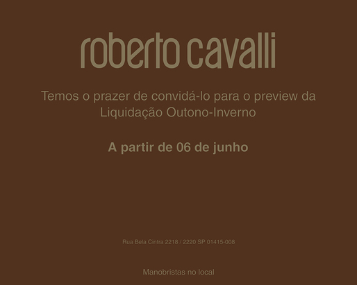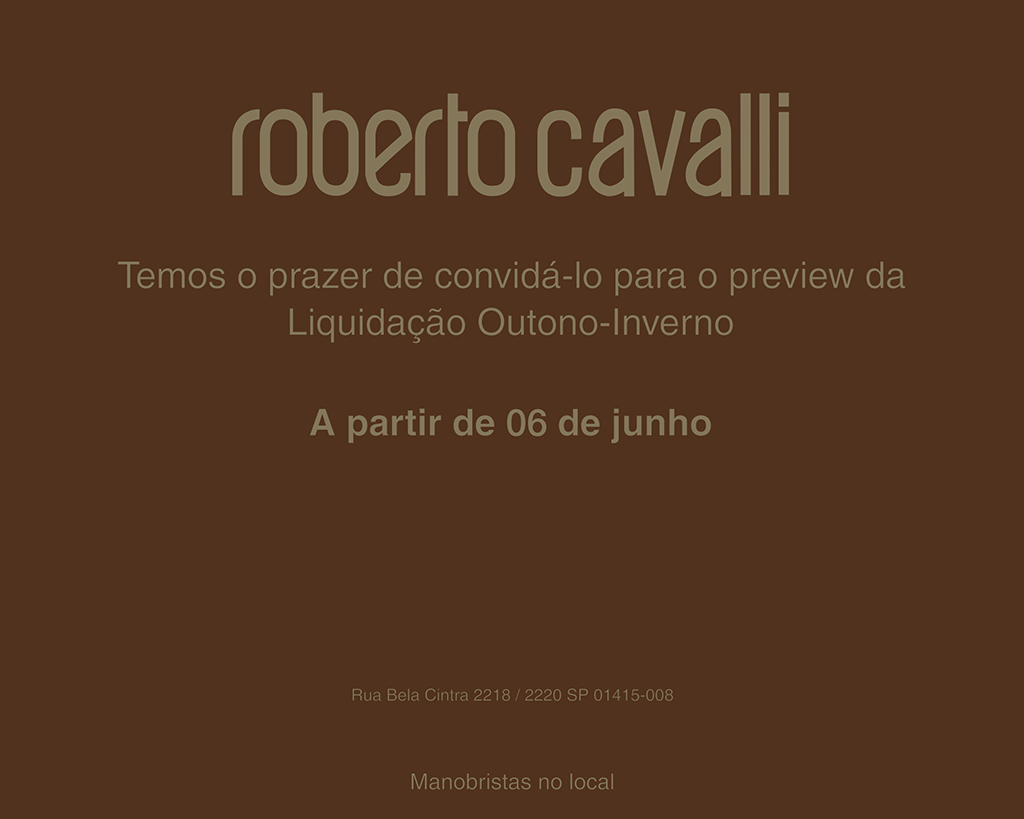 A partir de hoje as clientes Roberto Cavalli estão convidadas para liquidação da coleção Outono-Inverno que acontece na loja da Bela Cintra/SP!
