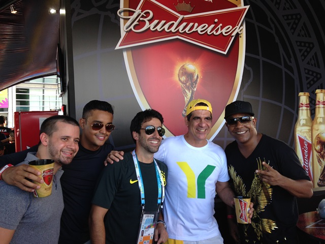 Convidado pela AMBEV, o cantor Topera, vocalista da Banda 5% esteve, na tarde de ontem (terça), na Arena Fonte Nova, para conhecer o Beer Garden da Budweiser, uma das ações globais e inéditas da marca patrocinadora oficial da Copa do Mundo da FIFA Brasil 2014. Artistas locais e torcedores vibraram e curtiram o espetáculo do futebol regado a muita Budweiser gelada e snacks. Além de Topera, Durval Lelis, Marcio Victor (Psirico), Tuca Fernandes, Lucas Kart e os meninos da banda Duas Medidas assistiram a partida Estados Unidos x Bélgica nesse local e diferenciado.