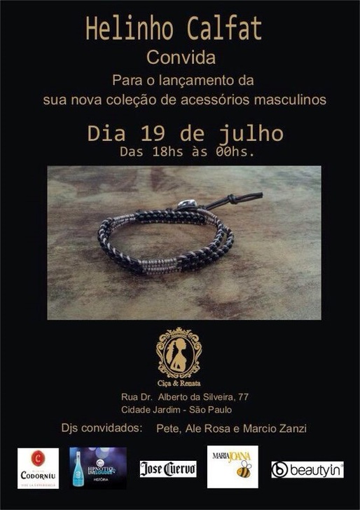 O queridinho da high society Paulistana e dos artistas mais famosos do Brasil, Helinho Calfat, estará lançandono no próximo sábado (19), sua nova coleção de acessórios masculinos inspirados no Brasil. Em parceira com as designers Ciça & Renata.