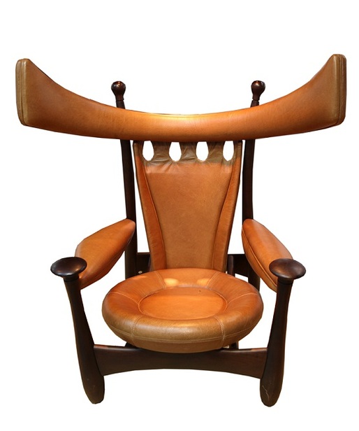 A poltrona Chifruda foi criada em 1962, para homenagear a vida rural, com design baseado nos chifres do boi. Do seu protótipo original foi produzida apenas uma unidade em jacarandá e couro que foi vendido e só reapareceu em 2008. A famosa criação percorre a exposição que já passou por Berlim, Lisboa, Rio de Janeiro, Brasília e fica até o final de setembro na capital baiana.